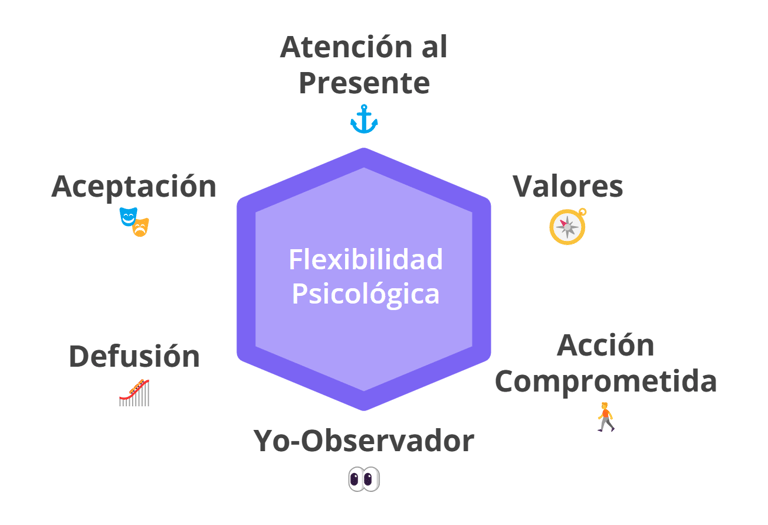La terapia se basa en un modelo que aborda seis procesos clave para lograr mayor flexibilidad psicológica: